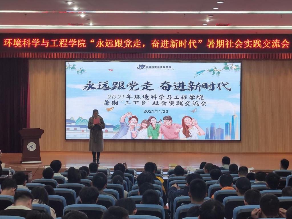 2021年11月23日晚我院在图书馆报告厅举行了主题为“永远跟党走 奋进新时代”暑期“三下乡”社会实践交流会。