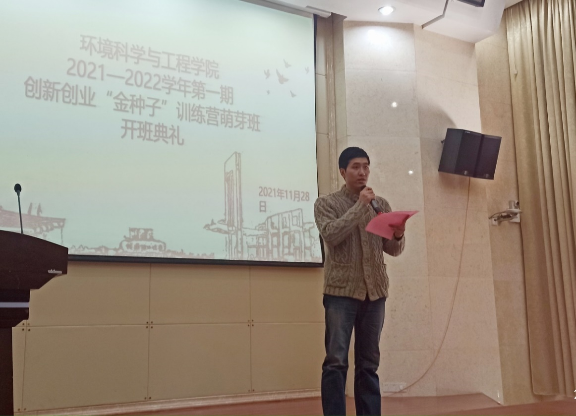 2021年11月28日,我院在萃华楼报告厅举行了环境科学与工程学院2021-2022学年第一期“金种子”训练营萌芽班开班仪式。