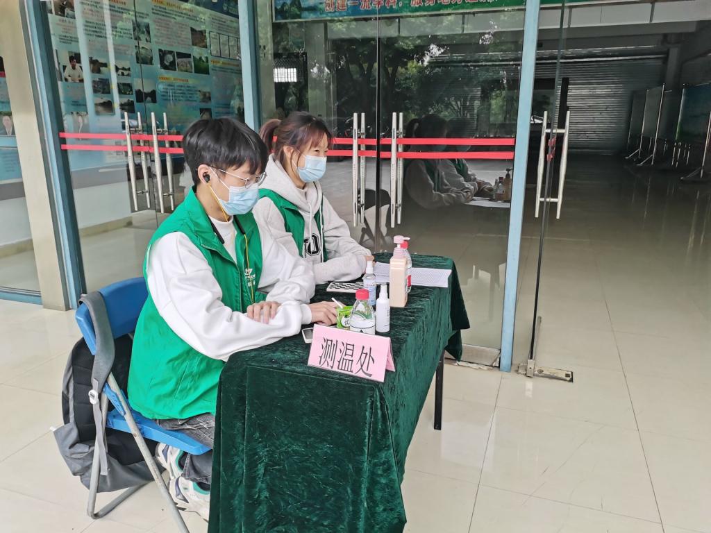 应学校与学院防疫工作需求,我院每天招募10名志愿者在九栋清和楼设点为进出人员进行体温测量、基础消毒等工作。
