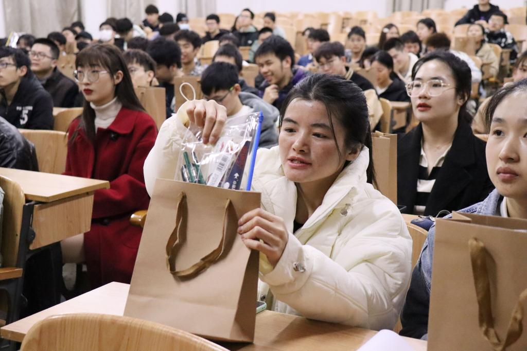 活动现场,学院党委副书记郝文佳详细了解了考研学生的备考情况,对同学们勤奋复习的状态给予了肯定和赞扬,并通过讲述趣味小案例,激励大家不惧困难、放手一搏,充分利用好最后的冲刺时间,以优异的成绩实现自己的理想。最后,老师们代表学院将精心准备的心想“柿橙”助力考研加油包发给学生们,让学生真切感受到环境学院大家庭的温暖。同学们收到老师们、学弟学妹们的祝福与鼓励,情绪激昂,纷纷表示,会耐得住寂寞,扛得住压力,不断超越自我,全力以赴度过考研前一周,以优异的成绩为学院增光添彩,不辜负老师们的期望。