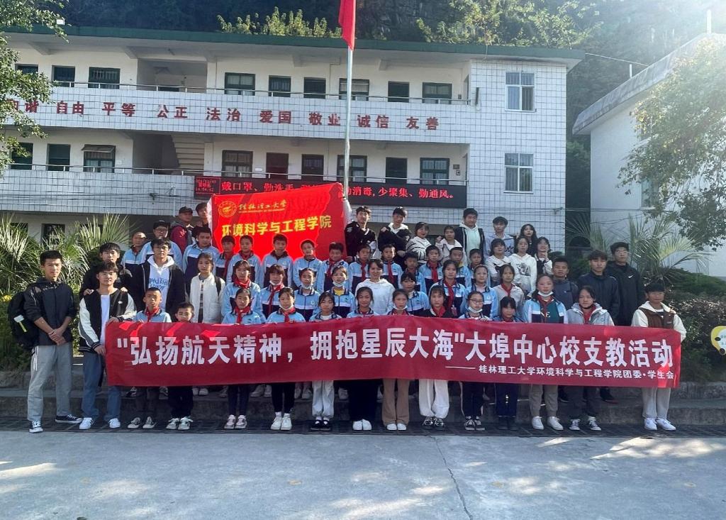 2021年12月3日下午2:30我院到桂林市雁山镇大埠中心校进行主题为“弘扬航天精神,拥抱星辰大海”的支教志愿活动。本次活动由我院的外联部组织,面向大埠中心校四至六年级开展。
