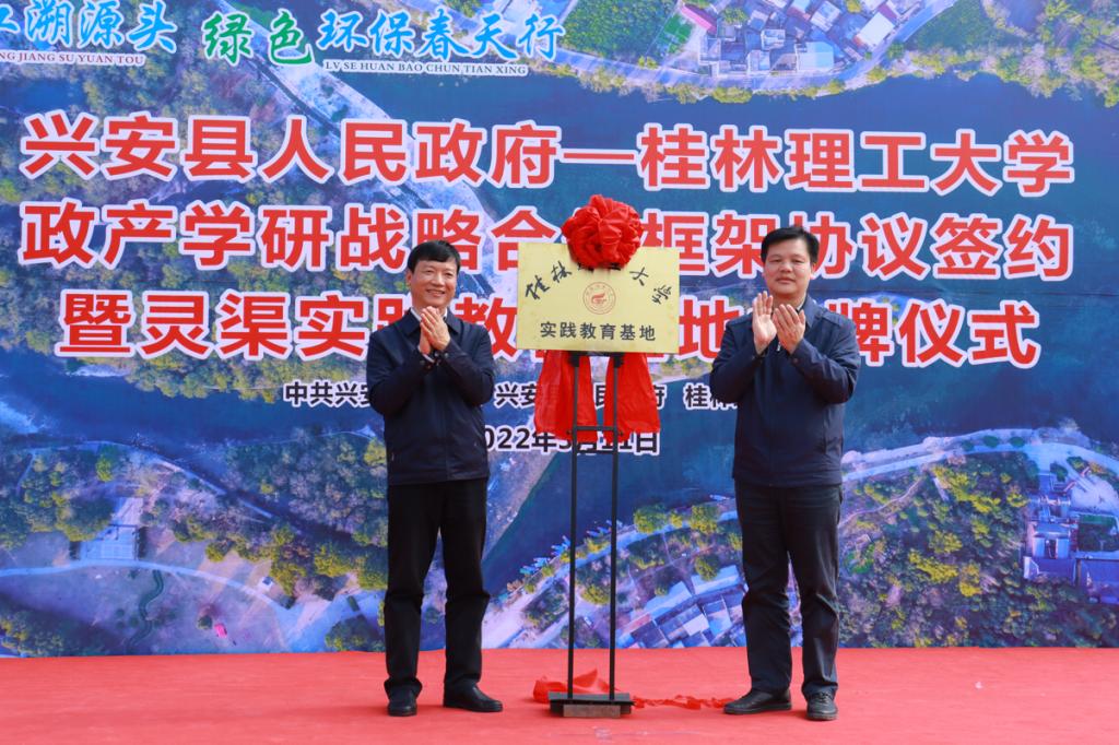 活动前,我院的师生们共同见证了我校联合兴安县人民政府共同举行的政产学研战略合作框架协议签约暨灵渠实践教育基地揭牌仪式。