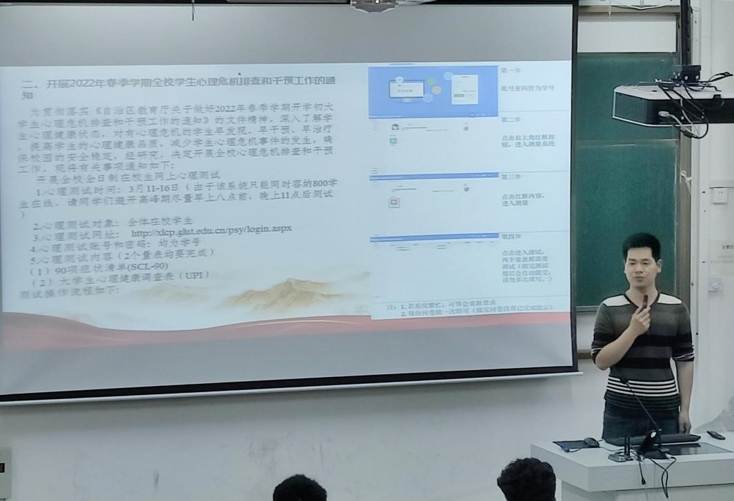 为贯彻落实《自治区教育厅关于做好2022年春季学期开学初大学生心理危机排查和干预工作的通知》(桂教思政〔2022〕2号)的文件精神,积极响应学校心理咨询中心关于开展2022年春季学期开学初学生心理危机排查和干预工作的通知,我院自3月10日起开始积极筹备学生心理危机排查和干预工作。