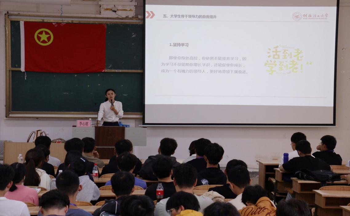 会议开始前,全体成员起立,奏唱国歌。本次开班仪式由郝文佳书记致辞,郝书记在致辞中表达出对于建设一支思想觉悟高、工作能力强、作风优良的团学骨干队伍的殷切希望,学习宣传贯彻党的二十大的精神,进一步培养我院学生骨干的综合素质。培训班第一讲中,李心愿老师对学生骨干怎样做好学生工作提出重要建议,就如何做好班长团支书的模范作用,提升个人领导能力等多角度做出详细的讲解。第一讲不仅使同学们了解到如何能够将自己培养成为一名具备领导力的新时代学生骨干,同时也有利于促进我院班级建设工作得到进一步的提高。