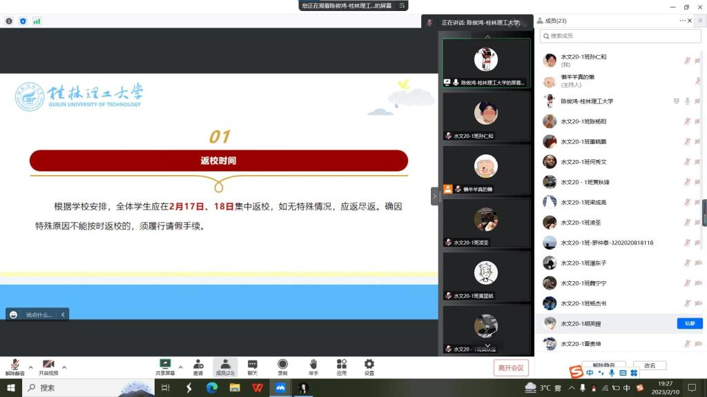 班会上,各班班主任对学校春季学期开学工作方案和学生返校工作安排,以及学生开学返校时间、返校条件、返校流程等进行了解读,并对学生返校前、后的交通安全、宿舍问题、学习问题、谨防诈骗进行了安全教育。并强调:当前我国疫情防控工作重心从“防感染”转向了“保健康、防重症”,实施了“乙类乙管”措施,但低流行不代表不存在,且校园学生基数大、人群密集,学校、师生依然是防控的重点场所和重点群体,容不得一丝懈怠。随后,各年级辅导员对会议内容进行了补充。