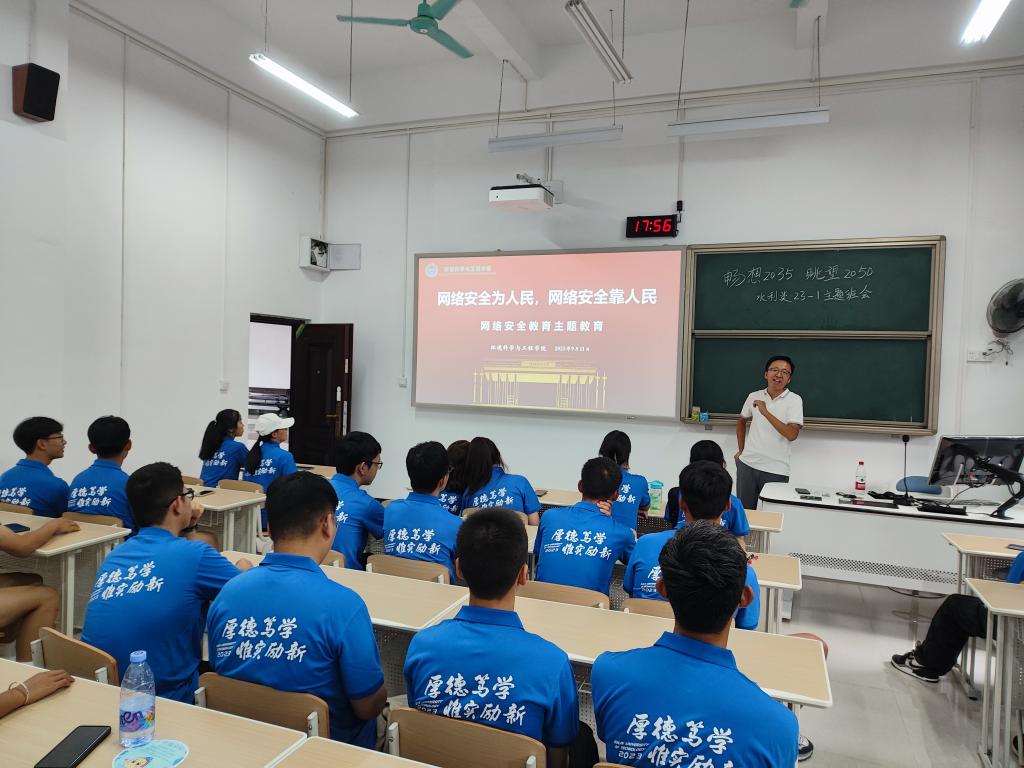 根据《自治区教育厅关于开展2023年国家网络安全宣传周校园日活动的通知》及学校《关于开展2023年国家网络安全宣传周校园日活动的通知》要求。近日,环境学院利用周日大学生成长成才教育课,新生主题班会,以视频、实例、线上线下互动交流等方式,组织学生学习网络安全知识,提升网络安全意识。