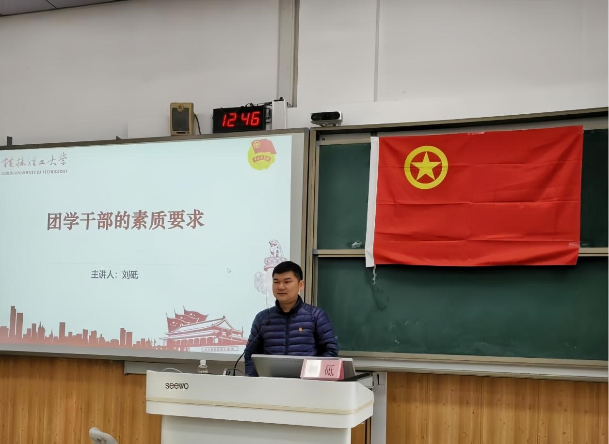 在这次会议中,刘砥老师围绕学生骨干主体,以“团学干部的素质要求”为中心,向同学们详细解读了作为学生骨干应有的责任和能力,呼吁同学们以青春活力助力中国式现代化并寄予殷切希望,通过本次培训班明确指出党的二十大后青年骨干的奋斗目标。