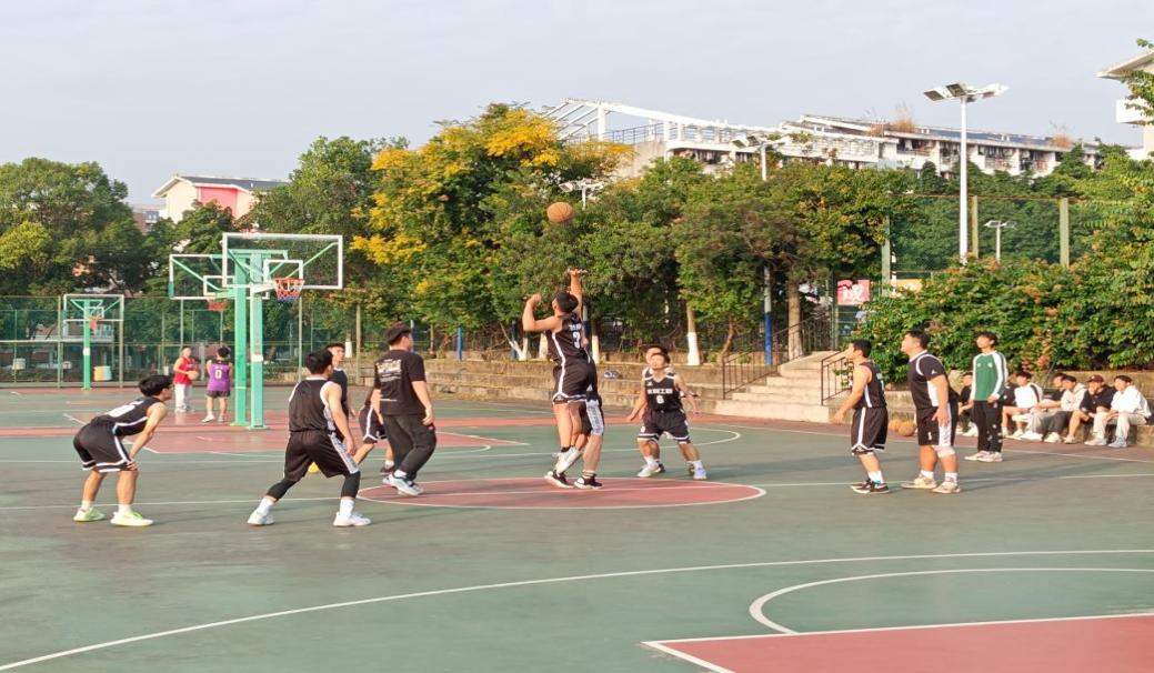 本次环院杯初赛在风雨篮球场举行,参赛的六个球队分别是水利(火焱队)、环境工程(环境学硕队)、土木水利-水利(孤独求胜队)、土木工程(趣多多队)、资源环境(不许插队)和土木水利-市政(啊对对对队)。比赛吸引了众多篮球爱好者前来观看。比赛现场,队员们精神抖擞、顽强拼搏,用精湛的球技和默契的配合,为观众呈现了一场场激烈的角逐。赛场上,队员们你争我夺,奋力拼抢,每一次进攻和防守都引发场边观众的欢呼。球员们的高超技艺和顽强意志,使得比赛充满了悬念和激情。本次环院杯初赛采用分组循环制,经过激烈角逐,最终脱颖而出的队伍将晋级下一轮比赛。