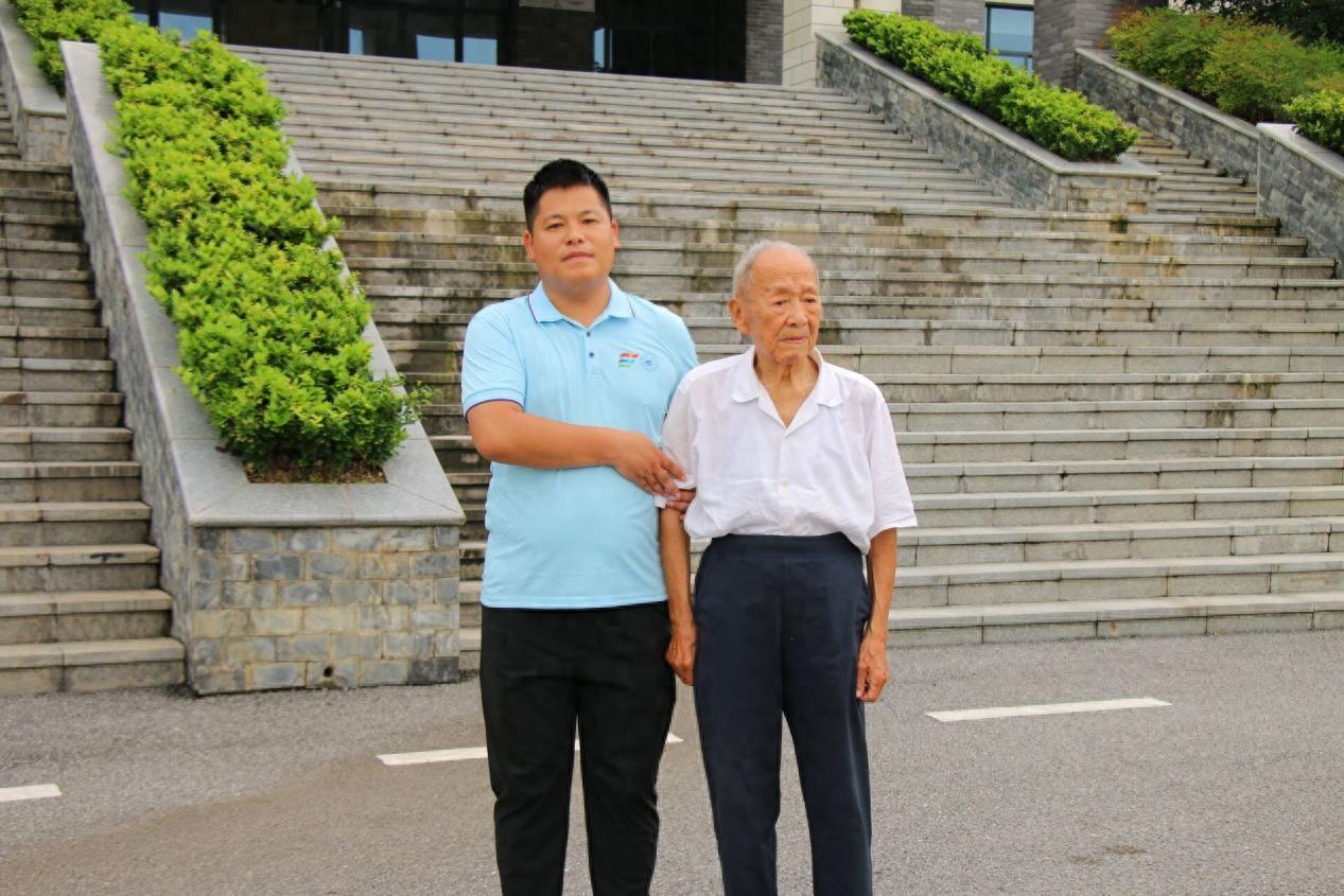 图为桂林理工大学杨平平老师与老红军胡正先合照