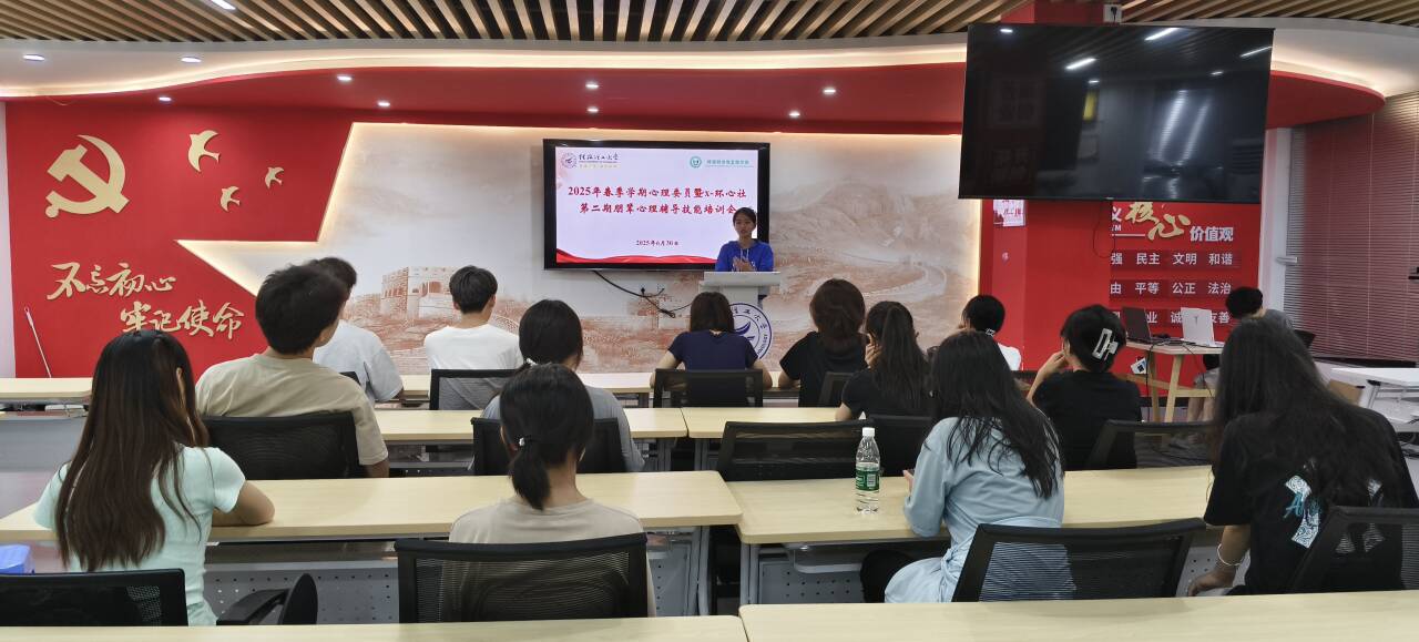 为进一步提升心理委员朋辈心理帮扶能力,筑牢校园心理健康防线,我院于6月30日晚在雁山校区明园思政大讲堂开展环境学院2025年春季学期心理委员暨x-环心社第二期朋辈心理辅导技能培训会,全体心理委员参加培训。