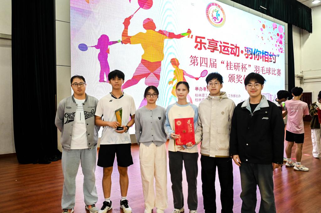 近日,桂林理工大学研究生会举办的第四届“桂研杯”羽毛球比赛在雁山校区旧体育馆圆满落幕。全校十六支代表队参与角逐,我院凭借扎实的竞技功底与出色的团队协作,最终收获男单亚军、男双季军、女双第四名,并获评“最佳组织奖”,充分展现了我院研究生昂扬向上的精神风貌。