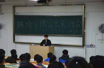 2017年3月27号晚,我院在雁山校区04323教室顺利召开本学期首次全院宿舍长例会,辅导员田明浩、贺旭霞出席并讲话,学院14、15、16级宿舍长参会。