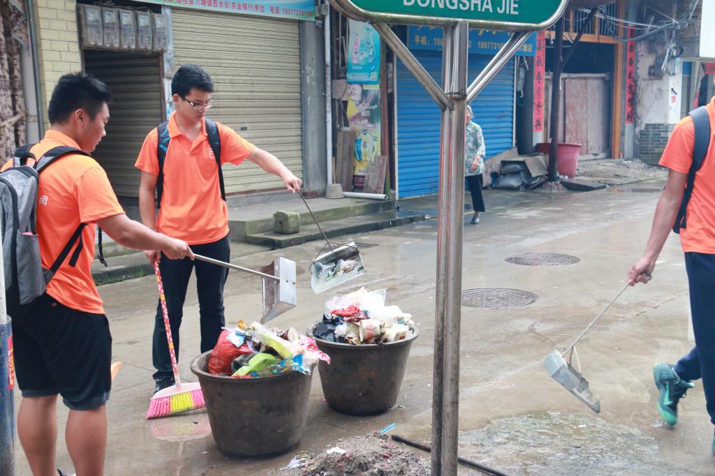 盛夏时节,正是垃圾发出恶臭的季节,这需要街道上很多打扫卫生的清洁工人及时的去清理垃圾。为减少他们的负担,传递青春正能量,在实践中体验生活,7月9日下午,我院赴六塘暑期实践团在六塘镇街头开展了清扫活动,为清洁乡村奉献出自己的一份力量。