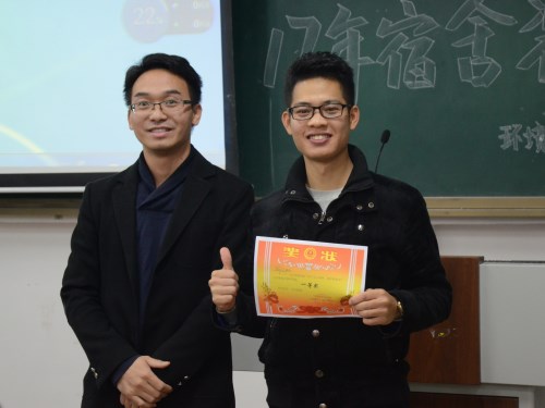 比赛在唐红兵老师精彩的致词声中拉开帷幕。决赛共有十组选手,通过参与评选的宿舍代表播放PPT并讲解宿舍装饰想法以及心得进行评比,竞争可谓是异常激烈。在比赛中,通过游戏环节充分活跃现场的紧张气氛,在互动环节中,唐老师、贺老师也与同学们一起积极参与其中。最终经过激烈的角逐,比赛结果由主持人宣布获奖宿舍名单,分别是:一等奖:9B510,二等奖:2A409、6A502,三等奖:6A509、2A413、4C312,优秀奖:4C208、6B101,最佳人气奖:2A413,由唐老师和贺老师为获奖宿舍颁奖后合影留念,比赛圆满结束。