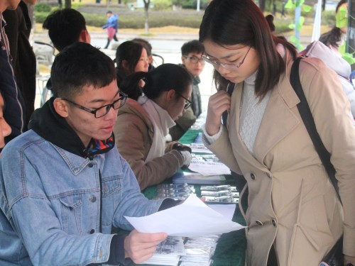 在宣传工作中,我院工作人员不惧天气寒冷,积极地向同学们发放宣传单,为同学们讲解有关垃圾分类的相关知识、宣传共享垃圾桶的益处。同时,在现场还设置了有奖问答活动,师生踊跃参与,收获了各种关于垃圾分类的小知识。据工作人员统计,截止宣传活动结束,我院共有104间宿舍报名参与了“共享垃圾桶”的活动,直接受益的同学达600余位。