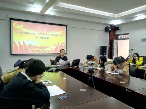 为学习贯彻《共青团桂林理工大学委员会改革实施方案》精神,切实加强我院团学工作,2017年12月26日中午,我院团委在萃华楼12407会议室召开《共青团桂林理工大学委员会改革实施方案》的座谈会,会议由学院团委副书记唐红兵主持,辅导员夏晴、宋海民、黄兆凡、田明浩、贺旭霞以及各班级班长、团支书参加了此次座谈会。
