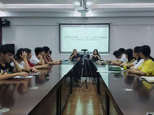 暑期来临,为确保学生安全、顺利地开展暑期社会实践活动。7月10日晚8点,我院在萃华楼12407会议室召开2018年暑期“三下乡”社会实践团队安全教育及工作安排会议。出席会议的人员有学院16级辅导员夏晴老师、唐源江老师以及灌阳县大源村“科技助力扶贫·环保扎根乡村”社会实践团队成员。