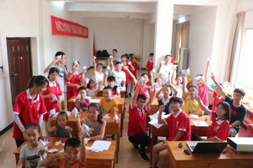 7月16日中午团员们经过简单的就餐之后,便立刻来到了文化宫开始布置会场,因为同学们都是第一次支教,都显得有些羞涩与紧张,害怕自己上不好课又或者小朋友们不喜欢自己,但更多的是对于支教行动的期待。小朋友如同一个个小天使一般携带着欢声笑语步入了教室,因为小朋友们的欢笑声,团员们心中的紧张也逐渐消退,热情的引领小朋友们入座,大家相互亲切的交谈,因为不认识产生的小小隔阂也烟消云散,因为小朋友大多数都已经5年级了,所以课程的开展还比较顺利,虽然有个别比较皮的小朋友,在团员温柔又不失严肃的指正下,支教活动还是比较顺利。