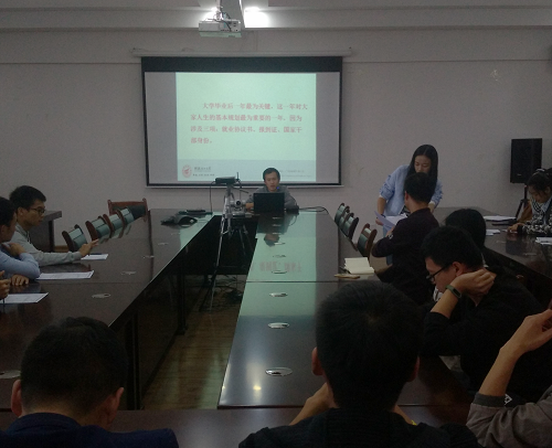接着对毕业生进行就业工作培训会。对毕业生工作时间表、就业派遣手续办理、党组织关系转出等重要事项进行详细讲解。通过对近年就业形势的分析,列举了签订三方协议或劳动合同过程中的注意事项,并具体介绍了报到证、档案的作用。最后,鼓励毕业生及时调整心态,从心理、信息、材料、技巧等方面做好充分准备,为顺利就业打好基础。