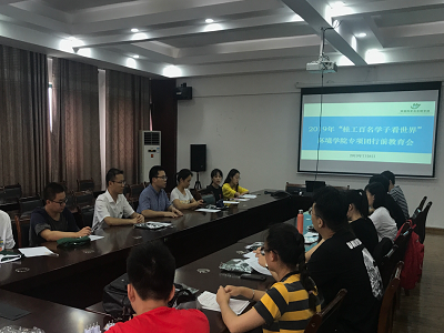 2019年7月8日中午,在雁山校区12407会议室召开了2019年“桂工百名学子看世界”环境学院专项团行前教育会。2019年“桂工百名学子看世界”环境学院专项团带队老师及团队学员参加了此次行前教育会。