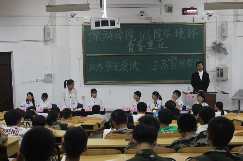 9月24日晚,环境学院与旅游学院辩论队在惟实楼05101举办了辩论表演赛——青春之论,比赛由路一鸣主持,我院19级学子观看了本次比赛。