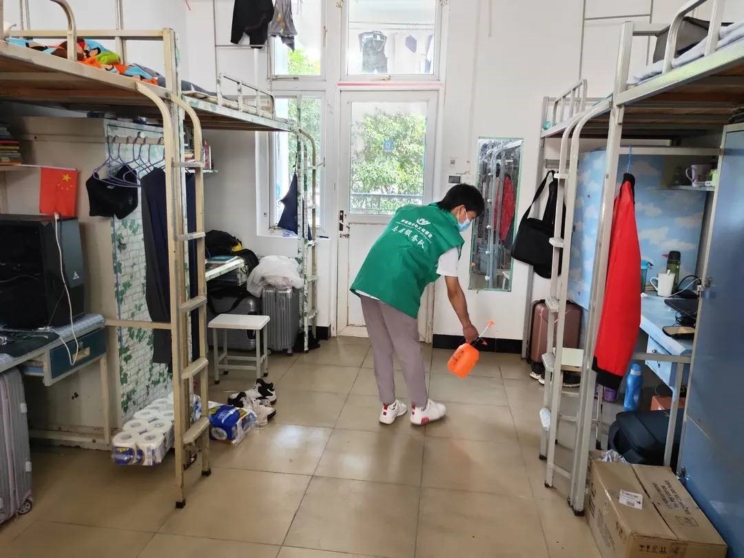 本次志愿活动以“志愿抗疫”为主题,一是组织受助学生在学院实验室值班,对进出实验室的同学进行体温检测;二是组织受助学生每周为学院学生宿舍进行全面消毒。
