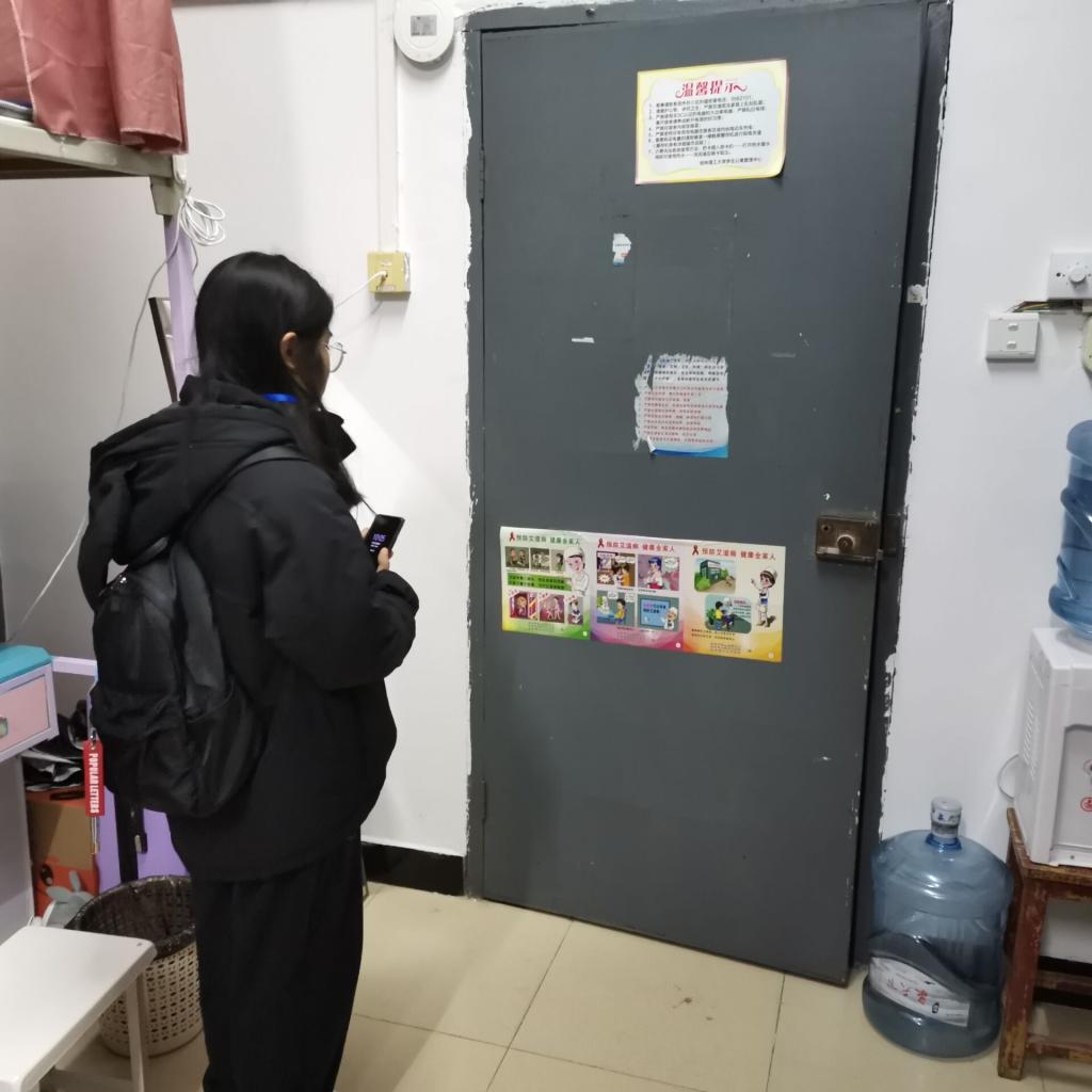 孙老师及宿舍管委会全体成员按照分工对我院全部宿舍进行了走访,向同学们宣传了关于防艾的注意事项,对宿舍损坏的艾滋病宣传标语进行了重新粘贴,同时提醒同学们注意宿舍和个人卫生。我院学生积极配合,防艾宣传工作和宿舍检查进行地井然有序。