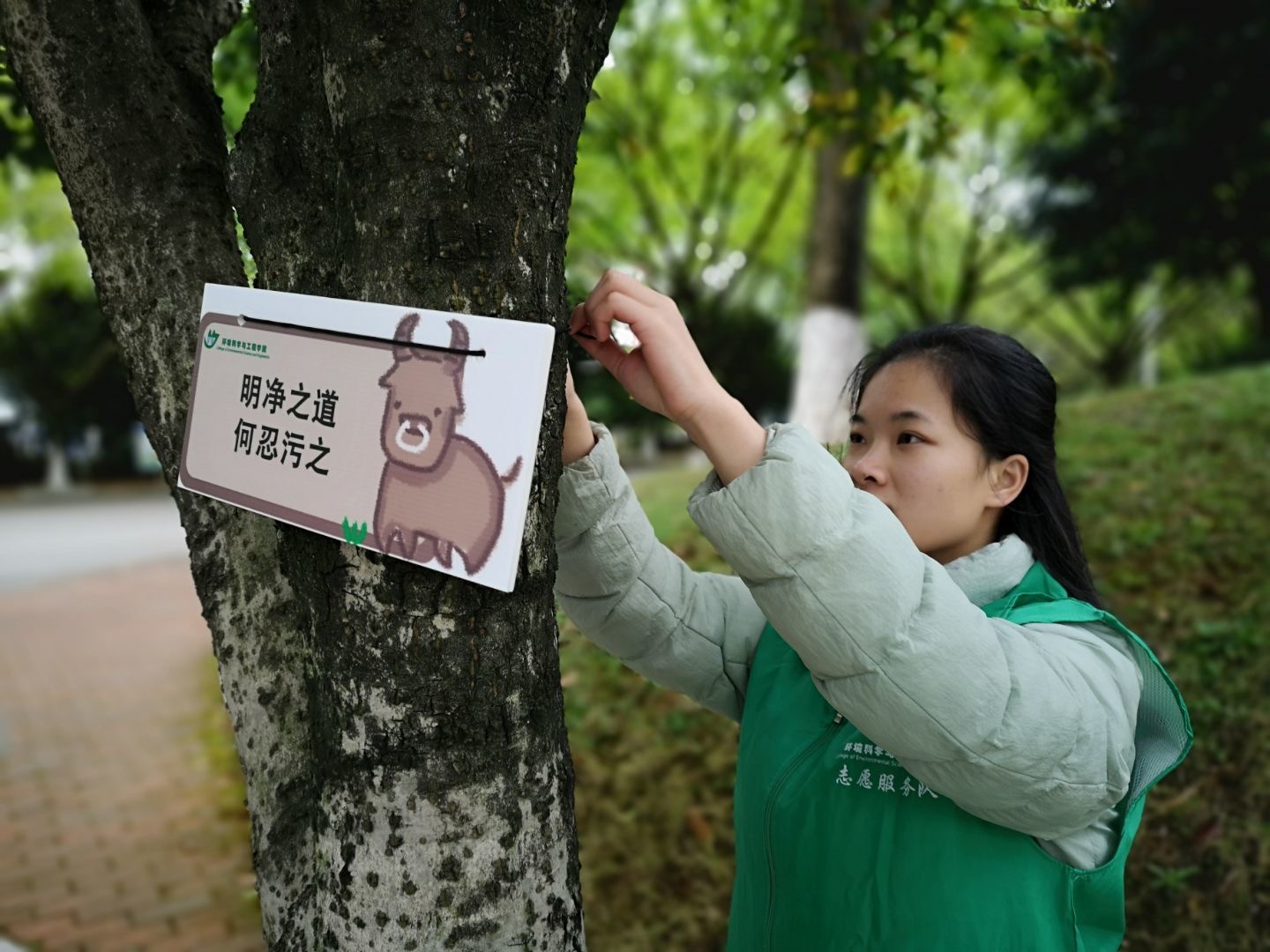 本次“环保春天行”悬挂标语牌活动不仅增强全校师生的环保意识,还激发同学们对于环保的热情,引导大学生积极投身环保志愿活动,争当环保志愿服务先锋,让环保志愿服务成为社会风尚。