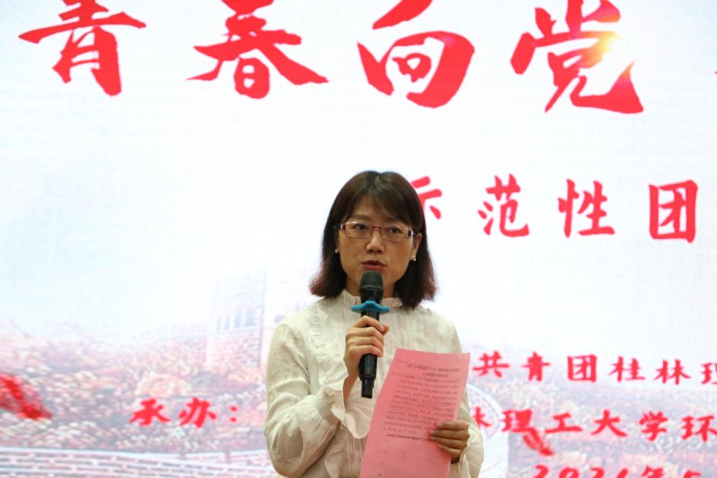 2021年5月7日, 2021年桂林理工大学“青春向党,奋斗强国”示范性团日活动在雁山校区图书馆报告厅顺利开展。活动由校团委主办,我院团委承办,环境工程2019-1班团支部结合支部实际,面向我校基层团支部开展了一次形式多样、具有创新意义的主题团日活动。活动邀请到了我校离退休老教授杨国清、校团委副书记莫媛、环境科学与工程学院党委书记姜子亮、副书记郝文佳以及各学院团委书记等老师参加。