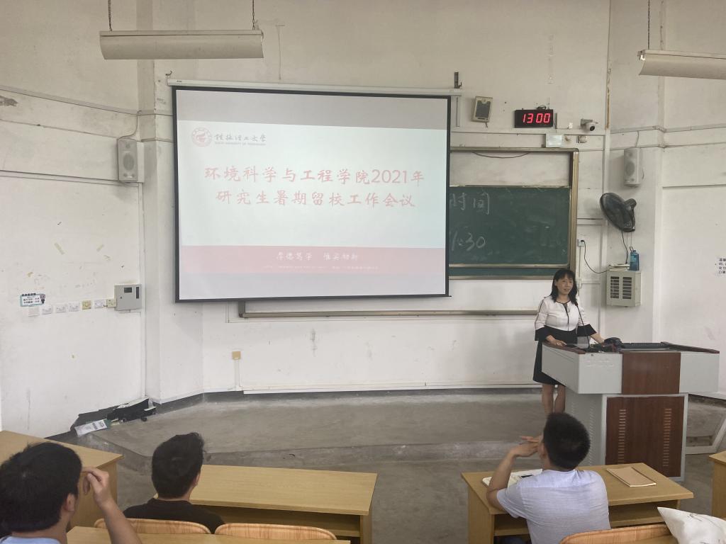 为进一步落实学校相关文件要求,确保暑假期间留校研究生人身和财产安全,做好我院常态化疫情防控工作。7月5日中午,我院在雁山校区05101教室召开研究生暑期留校工作会议。我院党委副书记郝文佳、副院长李艳红、实验室副主任梁延鹏、研究生辅导员孙云龙以及暑期留校研究生共计250余名参加了本次会议。