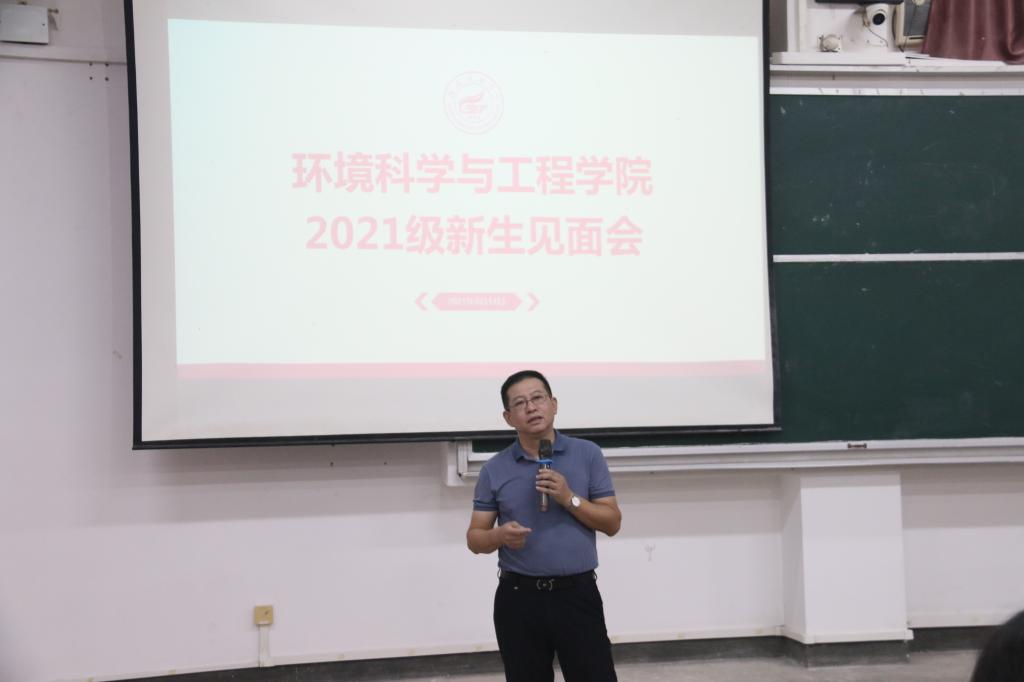 9月14日,环境学院2021级新生见面会在05314召开。学院党委书记姜子亮,院长曾鸿鹄,副书记、副院长、各教研室负责人、新生辅导员及全体2021级新生参加了见面会。此次大会由学院副书记郝文佳主持。