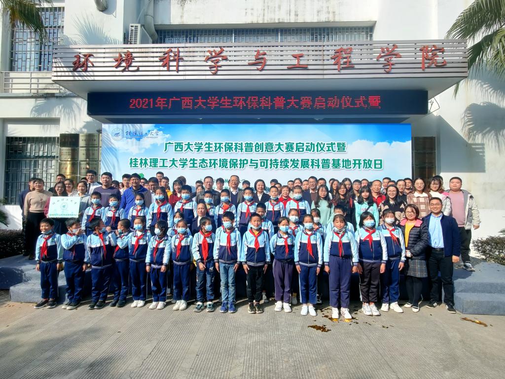 2021年11月11日下午14:30,我院承办广西大学生环保科普创意大赛启动仪式暨桂林理工大学生态环境保护与可持续发展科普基地开放日活动。此次活动我院科普队伍——实验室教师、学工教师、环保科普协会志愿者共计五十余人对大埠中心校的师生和兄弟学院同学们进行了环保知识科普并带领他们参观了17栋生态环境保护与可持续发展科普基地、地质博物馆。