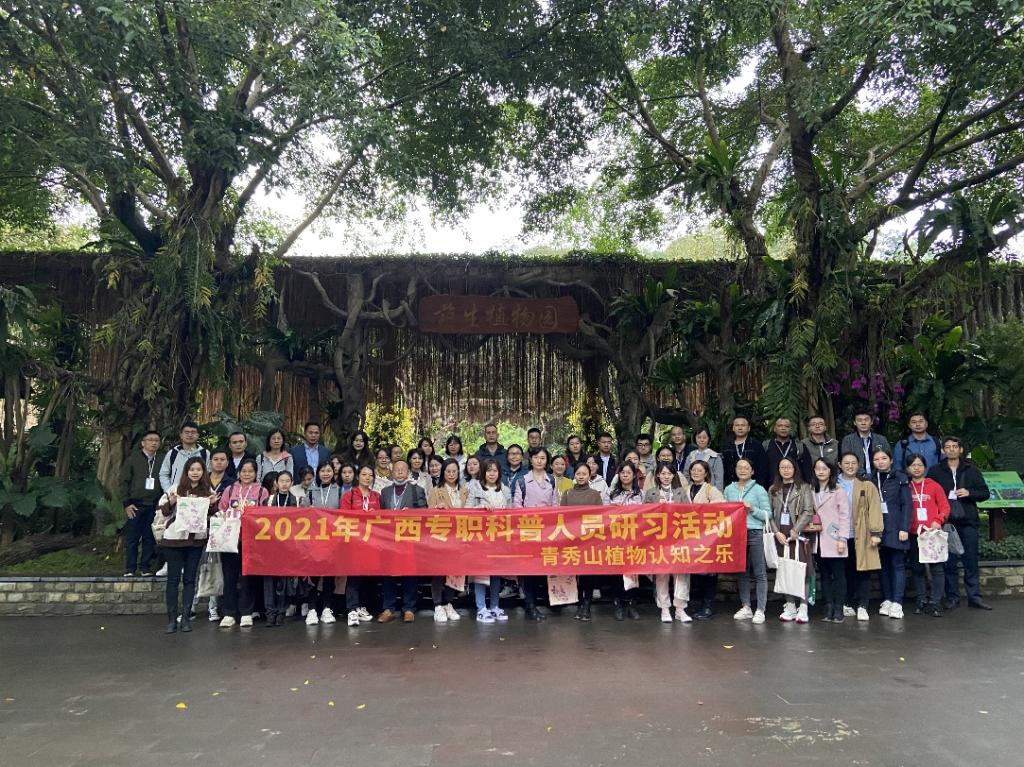 为了发展壮大生态科普人才队伍,帮助我院科普管理人员借助现代信息科技手段,创新科普基地工作的新思路、新模式和新方法,加快科普创新文化生态环境培育,我院教师于11月16日-11月19日在南宁参加由自治区科技厅举办的“2021年广西专职科普人员研习活动”。