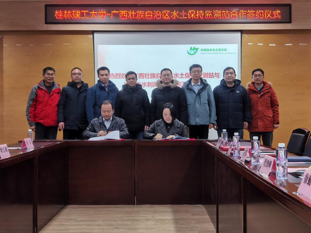 2021年12月28日,桂林理工大学环境科学与工程学院与广西壮族自治区水土保持监测站(以下简称“区水保站”)合作签约仪式于屏风校区圆满完成。区水保站站长宁春鹏、副站长梁志鑫一行,学院党委书记姜子亮、院长曾鸿鹄,研究生院副院长代俊峰,桂林市水利局副局长陈金华,桂林市农田灌溉试验中心站党委书记冯广、站长粟世华参与签约仪式。