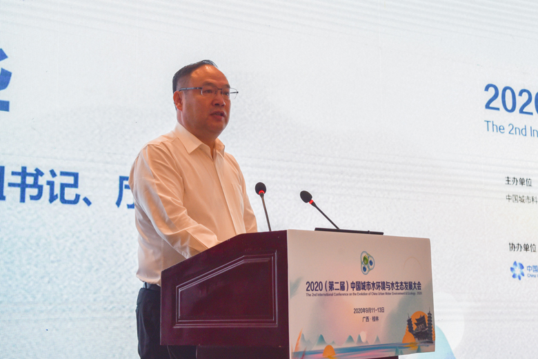 金秋九月,丹桂飘香,八桂大地,智者云集。9月12日上午,2020(第二届)中国城市水环境与水生态发展大会在桂林顺利开幕。广西壮族自治区人民政府副主席黄俊华,中国工程院院士、中国城市科学研究会水环境与水生态分会会长、我校名誉校长曲久辉,中国科学院院士袁道先,中国工程院院士彭永臻、徐祖信、任洪强,自治区人民政府副秘书长唐宁,自治区科技厅党组书记、厅长曹坤华,广西科学技术协会党组书记、副主席纳翔,自治区教育厅副厅长李清先,桂林市委副书记、秘书长赵仲华,我校校长解庆林、副校长王敦球等领导和嘉宾出席开幕式。来自政府有关部门、水分会委员代表、团体会员单位代表、个人会员代表以及全国各地从事水务工作的专家、学者、工程技术人员及企业家等参加大会。会议由中国城市科学研究会第六届理事会秘书长、水分会副会长兼秘书长、清华大学环境学院教授余刚主持。