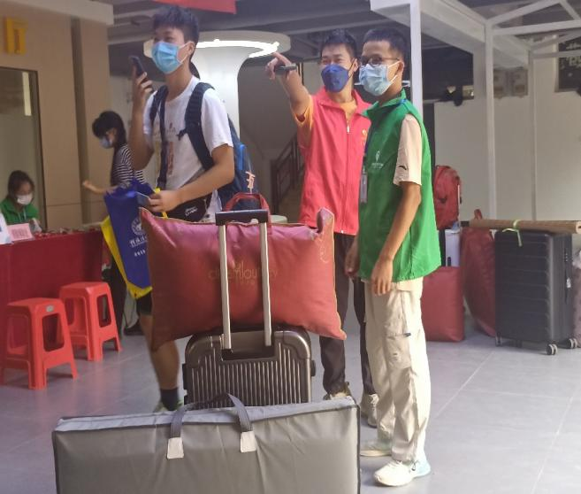 迎新当天早上,晨阳惺忪,日光温柔,学生党员先锋队队员们按照防疫要求,穿着整齐,迎新工作全程佩戴好口罩,早早到达一号食堂、女生宿舍、男生宿舍和研究生宿舍等各迎新接待处,热情地接待22级新生,帮忙搬运行李,介绍校园,指引新生到达办理各项入学手续的地点……温暖的笑容、真诚的服务、热情又耐心的帮助是他们本次服务的亮点,收获每一句暖心的谢谢都让他们露出喜悦的笑容。
