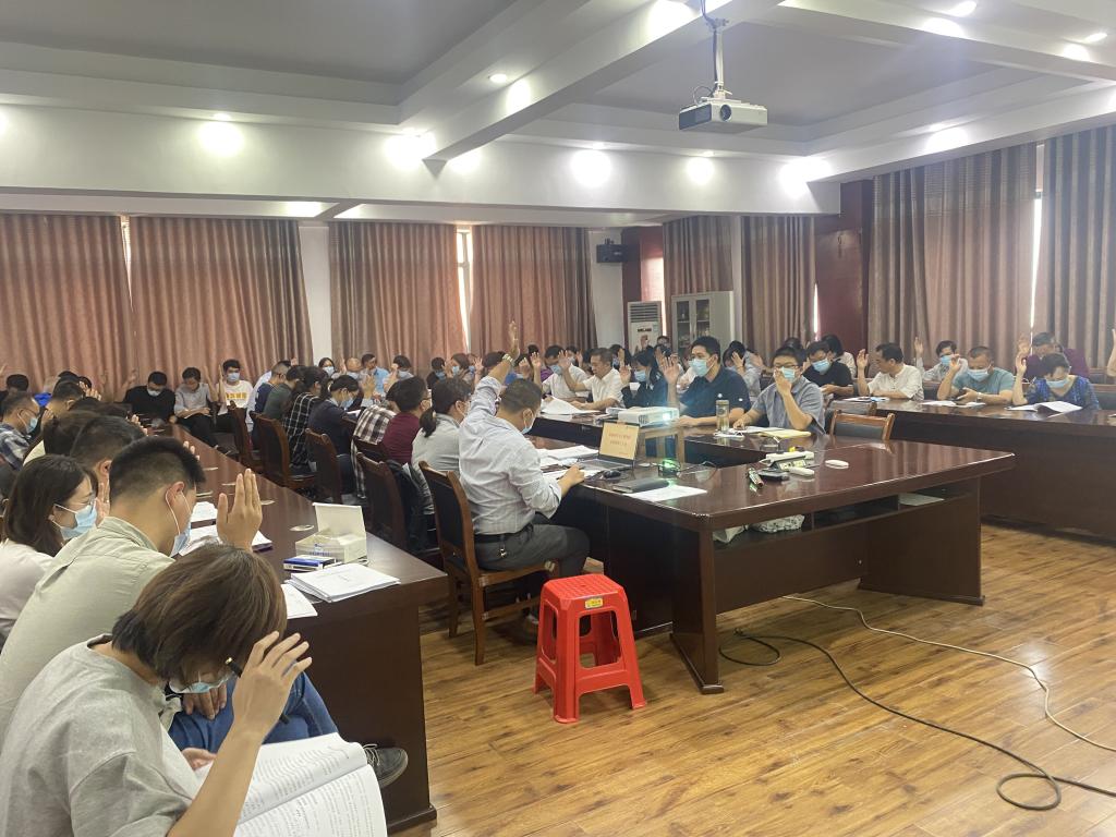 大会预备会通过了大会议程安排、大会主席团和秘书长名单、各正副组长名单。在庄严的国歌声中,大会正式开幕。大会听取了李海翔副院长关于《环境科学与工程学院本科教育审核评估工作方案(2022-2023 年)》情况说明;在分组讨论中,各位教职工认真审议了《环境科学与工程学院本科教育审核评估工作方案(2022-2023 年)》,并进行了热烈发言,为做好新一轮的本科教育教学审核评估准备工作,提出很多有益的意见和建议;最后大家举手表决一致通过《环境科学与工程学院本科教育审核评估工作方案(2022-2023 年)》决议(草案)。