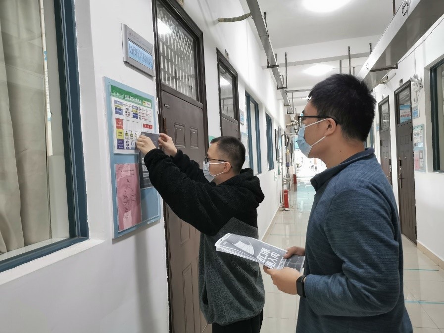 实验室老师粘贴疫情防控宣传标语