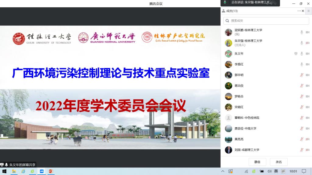 2023112日上午,广西环境污染控制理论与技术重点实验室通过腾讯会议以线上方式召开了2022年度学术委员会会议。重点实验室学术委员会委员中国地质大学(北京)郭华明教授、清华大学刘锐平研究员、成都理工大学刘国教授、中南大学唐崇俭教授和贺州学院罗杨合教授以及重点实验室三家依托单位的学术委员会成员出席了本次会议。本次会议由李艳红研究员主持。