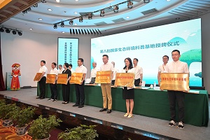 我校环境污染防治与生态保护实训中心负责人曾鸿鹄教授(左3)上台领取基地牌匾