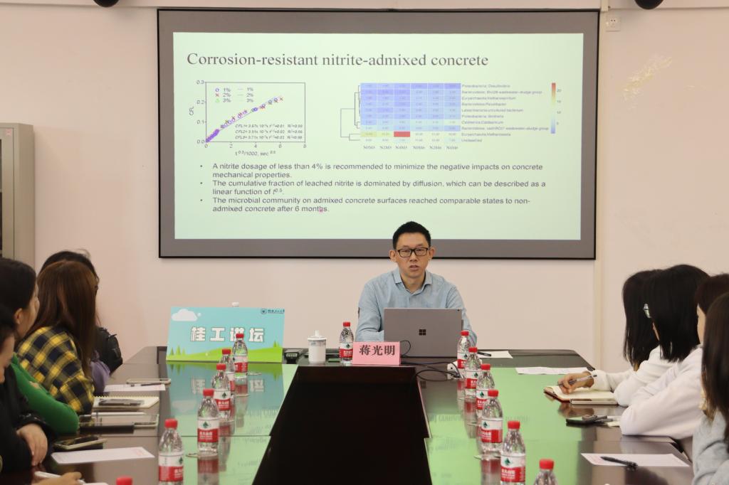 为加强培养学生具有国际视野,10月20日上午,我院特邀澳大利亚伍伦贡大学蒋光明副教授于雁山校区萃华楼12407会议室作题为《Towards sustainable sewer systems: Research advances in microbial corrosion of concrete and wastewater-based epidemiology》(实现可持续的给排水管网系统:混凝土微生物腐蚀机理和基于废水的流行病学的研究)的学术报告会。我院本科生和研究生聆听了本次讲座。