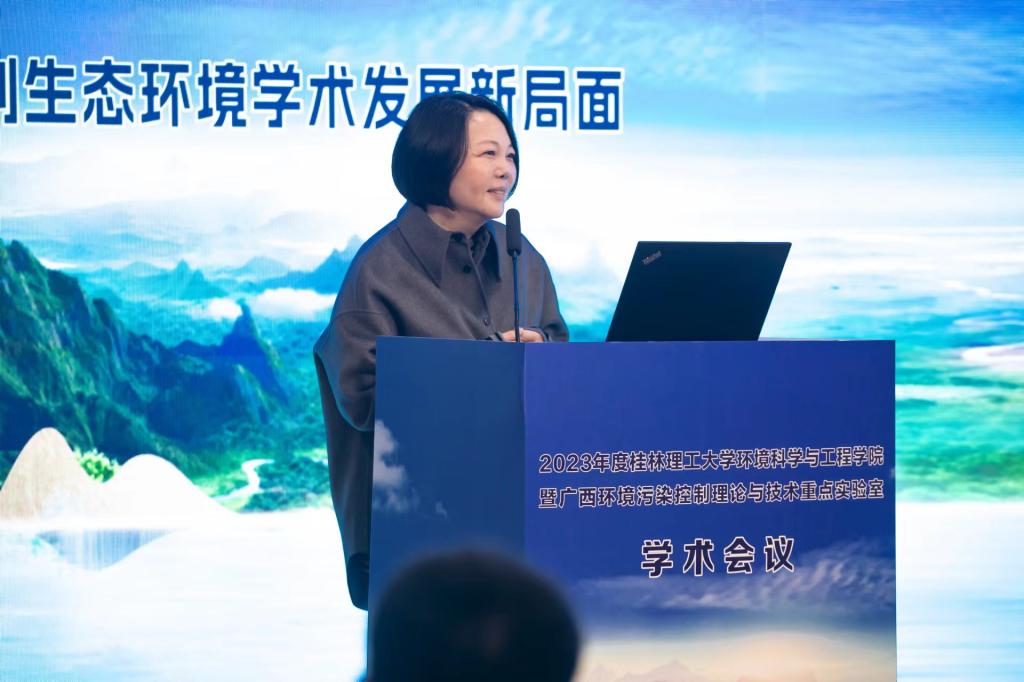 环境科学与工程学院院长曾鸿鹄在致辞中代表桂林理工大学对此次会议的召开表示热烈祝贺,她指出桂林理工大学环境科学与工程学院紧跟国家战略需求,结合广西实际,紧抓“有色金属”“岩溶”“漓江”“低碳”关键词,凝练有色金属矿区环境污染管控与修复、水循环利用与低碳水系统、流域生态保护与风险评估、岩溶地球化学作用与碳中和固废处理处置与碳循环等5个研究方向开展有组织科研,全面提升环境学科建设,逐步形成了以环境工程学为特色、多学科交叉融合的发展模式。希望以本次会议为契机,共同探讨生态环境领域的新理论、新方法、新技术、新成果,携手为国家环保事业的发展作出新的更大贡献。