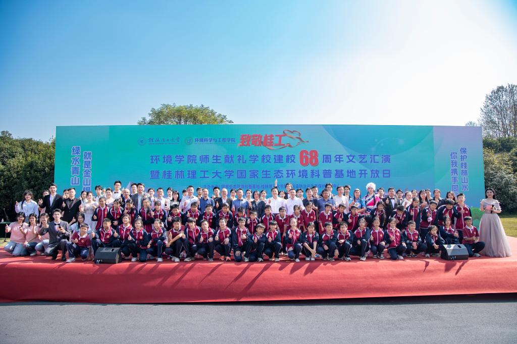11月11日上午,在学校建校68周年校庆日到来之际,为贯彻落实习近平总书记在党的二十大报告中提出推动绿色发展、促进人与自然和谐共生的理念,鼓励青年学子走进国家生态环境科普基地,学习生态环保知识,提高环境保护意识,以实际行动献礼学校建校68周年,由国家生态环境科普基地—桂林理工大学环境污染防治与生态保护实训中心、环境科学与工程学院主办的“致敬桂工”环境学院师生献礼学校建校68周年文艺汇演暨桂林理工大学国家生态环境科普基地开放日活动在雁山校区举行。学校党办校办、学生工作部(处)、研究生工作部、发展规划处、漓江保护与发展研究院、研究生院、校工会、地质博物馆等学校相关职能部门代表及学院全体党政领导班子出席活动,桂林市雁山中学校及环境科学与工程学院师生代表参加活动。