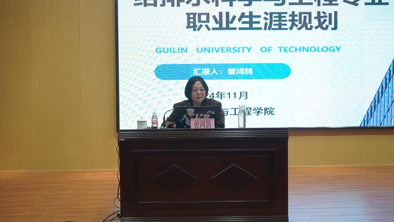 为落实立德树人根本任务,深化“三全育人”综合改革,深入贯彻落实习近平总书记在全国教育大会上的重要讲话精神,提升人才培养质量,更好的帮助大学生做好职业生涯规划,11月27日下午,学院在雁山校区图书馆报告厅开展了给排水专业职业生涯规划讲座。本次讲座由学院院长曾鸿鹄教授主讲,学院党委书记代武社、副书记叶大相、院长助理张帅普出席活动,学工组长、年级辅导员及2022级给排水专业全体学生参加活动。