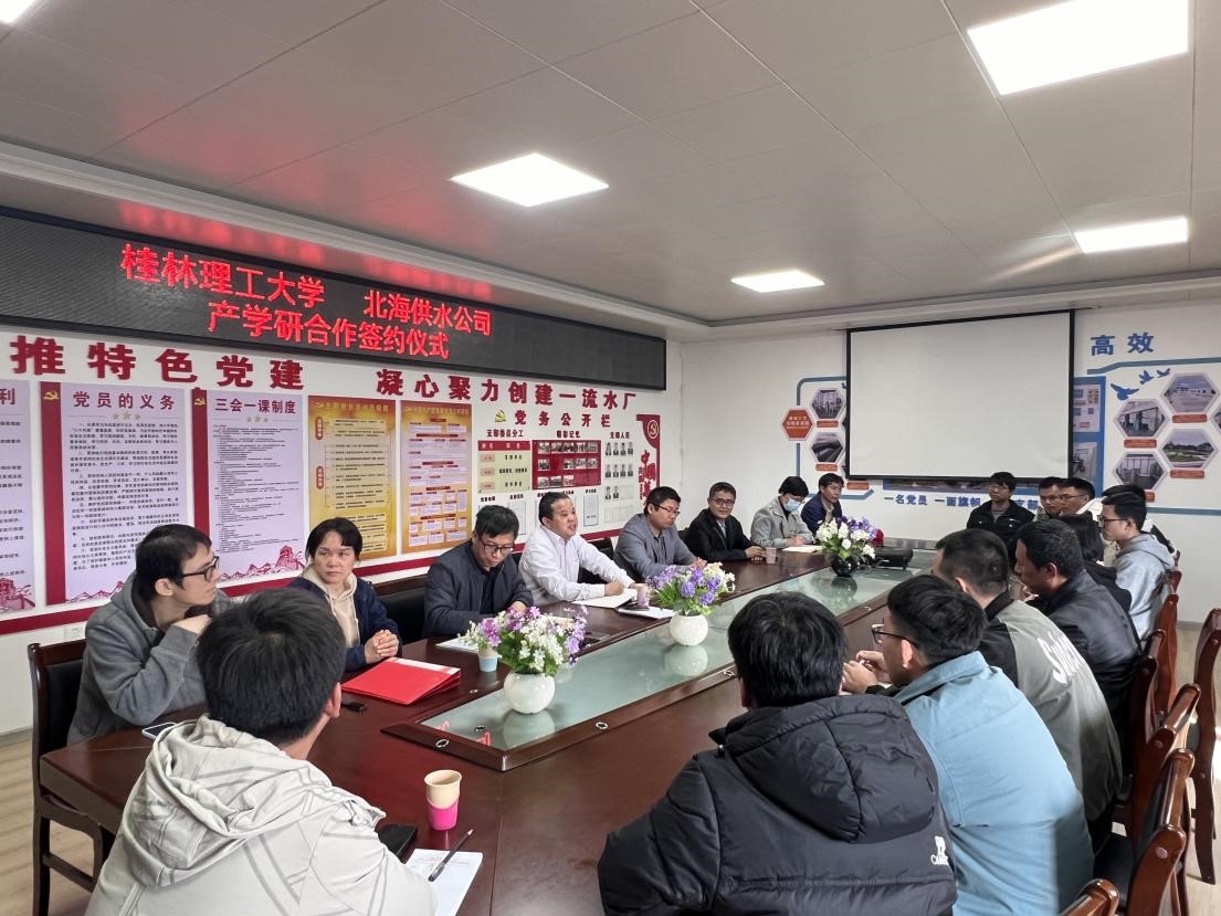 工作室充分发挥其在生态环境保护领域的学科优势和科研实力,将与北海市供水公司共同组建产学研合作基地,聚焦供水领域的关键技术和瓶颈问题,开展联合攻关。双方将共同投入资金和资源,建立科研项目合作机制,推动科技成果在供水领域的转化应用。北海市供水公司王建新总经理表示,此次合作,将为公司注入新的科技活力和人才支持,公司将充分发挥自身在供水运营和市场方面的优势,与桂林理工大学环境学院共同探索产学研合作新模式,推动供水事业创新发展。