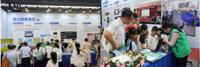 我院国家生态环境科普基地(桂林理工大学环境污染防治与生态保护实训中心)参与了重点科普成果展示。基地以“绿色守护者:环保科普创新与实践成果展”为主题,展出了环保科普绘本、环保科普视频和太阳能供电船载一体式污水处理装置,并设置了“污泥里的世界”和“美丽的仙境”两个科普互动实验。活动现场吸引了许多公众参与体验,通过寓教于乐的方式传播环保知识和绿色发展理念。