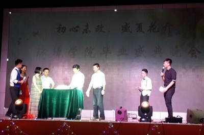 凤凰花开,忧伤六月。分离其实并不都是感伤的,有一句话说的好,别离是为了更好的相遇。2016年6月12日晚我院于雁山校区体育馆为大四毕业生举办了“初心未改,盛夏花开”2016届毕业晚会。本次晚会邀请了学校校长解庆林、我院党委书记王璐、副院长游少鸿、党委副书记郝文佳、环境工程教研室副主任覃礼堂、给排水教研室赵文玉、水文教研室金鑫、团委书记唐红兵、以及辅导员夏晴、宋海民、黄兆凡等老师参加。