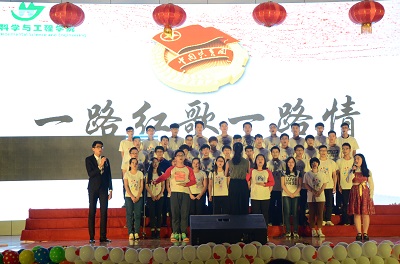 为激发同学们的爱国热情,传递五四精神正能量,同时促进同学之间的交流合作,3月25日晚,我院于雁山校区体育馆举行了五四班级歌咏比赛。学院党委书记王璐、党委副书记郝文佳、副院长李艳红、团委书记唐红兵以及各年级辅导员及各班班主任出席了本次活动并担任评委。