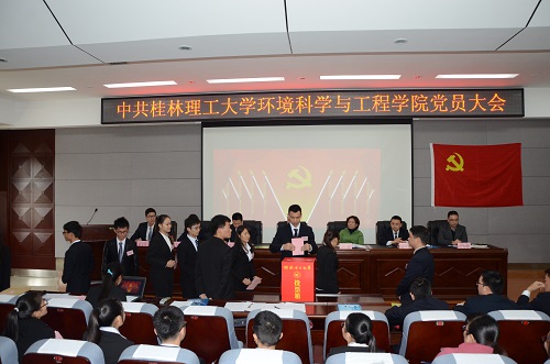 2015年11月17日下午,中共桂林理工大学环境科学与工程学院党员大会圆满完成各项议程后,在雁山校区地球学院报告厅胜利闭幕,大会由学院上届党委书记王璐同志主持。