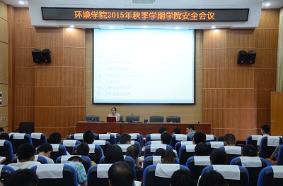 9月8日下午,我院在萃华楼报告厅召开2015年秋季学期研究生安全会议暨实验室安全规则培训。学院游少鸿副院长、李艳红副院长、郝文佳副书记出席会议,梁美娜老师出席会议并做实验室安全规则培训,全体在校硕士研究生参加会议。会议由李艳红副院长主持。